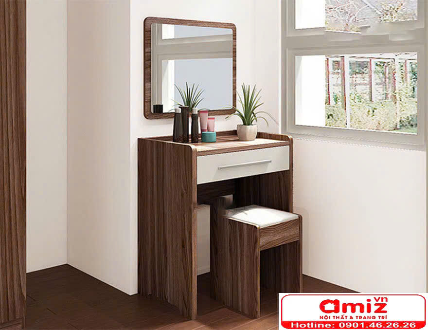 Không cần cầu kì, sang trọng nhưng Bàn Trang Điểm Gỗ Kiểu Dáng Nhỏ Gọn AMIZ-032 vẫn được rất nhiều khách hàng của AMIZ yêu thích. Bộ bàn trang điểm gồm bàn với thiết kế gồm ngăn kéo để đồ tiện dụng, ghế ngồi và gương gắn tường cỡ lớn sẽ mang đến cho bạn một góc làm đẹp hoàn hảo ngay tại nhà.