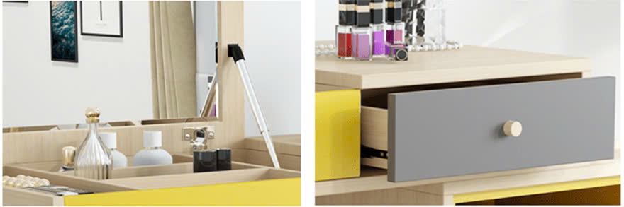 AMIZ cung cấp đến bạn nhiều màu sắc và kiểu vân gỗ khác nhau để có thể tùy ý lựa chọn mẫu bàn trang điểm của mình. Bạn đừng quên tham khảo thêm những mẫu bàn trà phòng khách, tủ quần áo, giường ngủ gỗ cho gia đình.