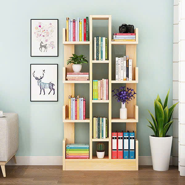 Giá kệ sách bằng gỗ thiết kế độc đáo với kiểu zíc zắc cung cấp cho người dùng không gian lưu trữ lý tưởng cho người dùng