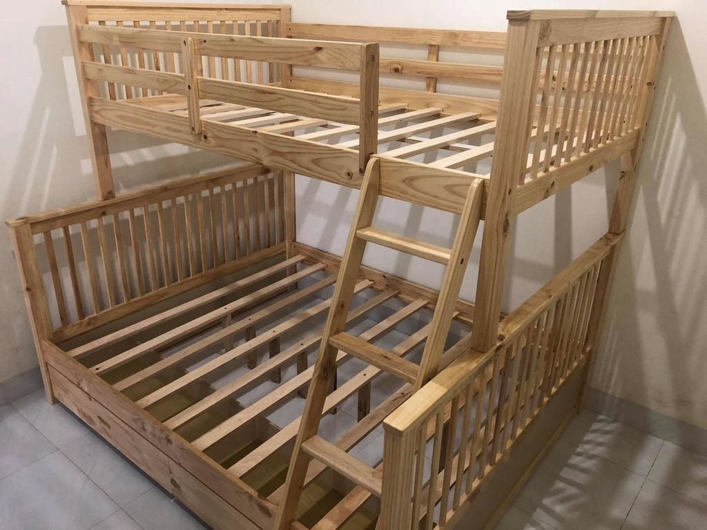 Sản phẩm được làm từ gỗ thông cao cấp đã được xử lý chống mối mọt, cong vênh. Đặc biệt, mẫu giường tầng gỗ K.Bed này còn có 1 ngăn kéo rộng 1m, có thể kéo ra và sử dụng như một giường phụ khi nhà có khách hay đông người ngủ lại, tầng kéo này có thể kéo rời rất tiện lợi. Thiết kế lan can chắn an toàn khi nằm ngủ. Cầu thang đơn rộng rãi và vững chãi giúp bạn lên xuống dễ dàng.