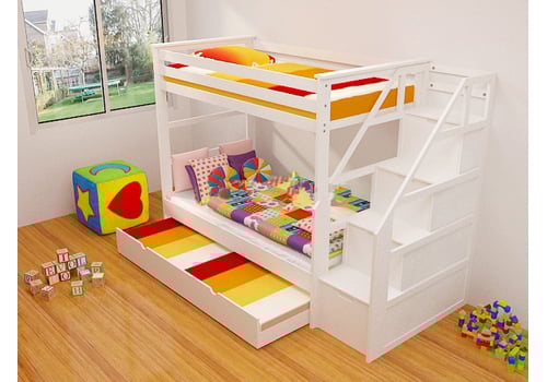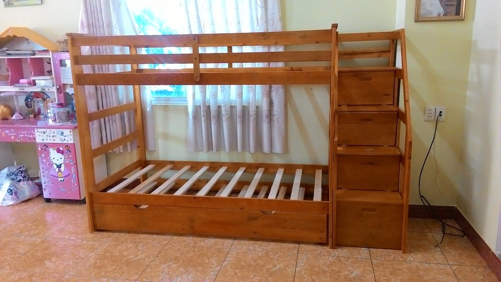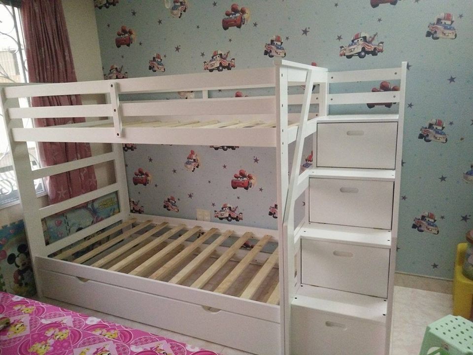 Số tầng: gồm 3 tầng giường và ngăn tủ cầu thang chứa đồ tiện lợi