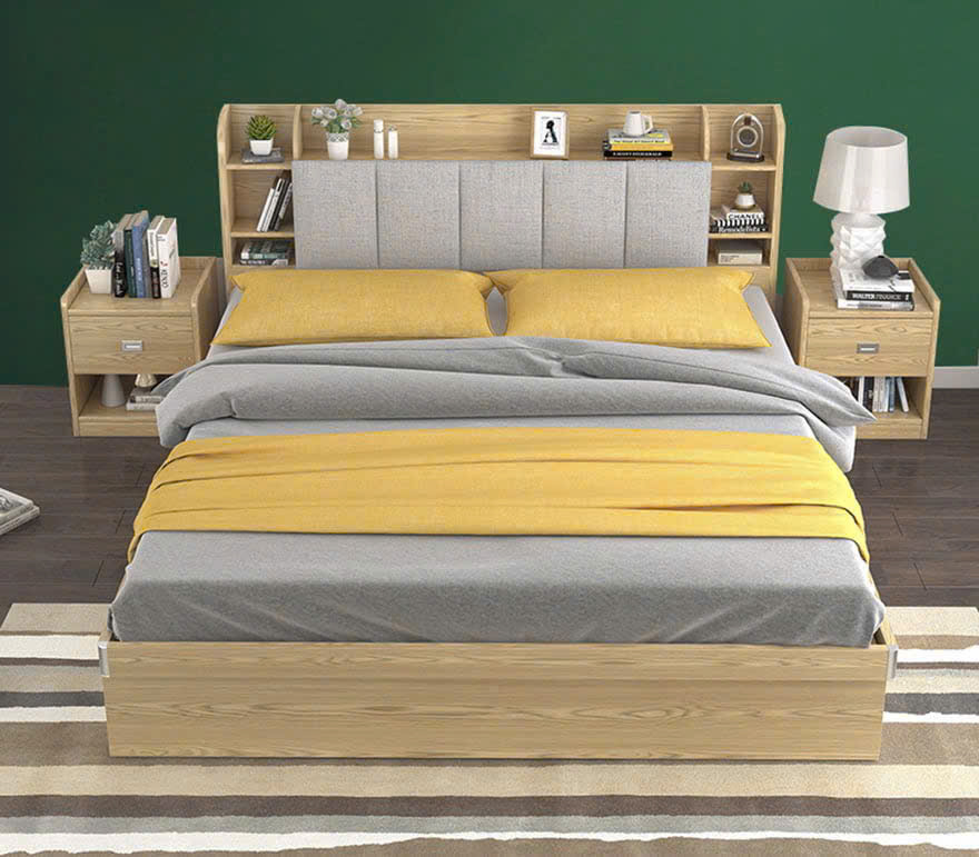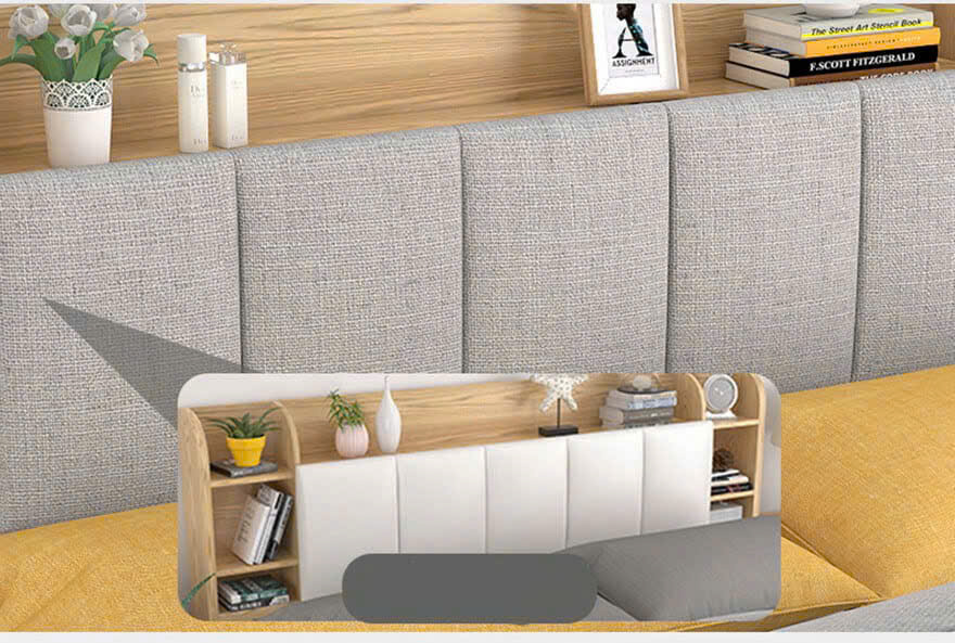 Tựa đầu giường được thiết kế thêm kệ để đồ tiện ích giúp người dùng dễ dàng sắp xếp đồ đạc