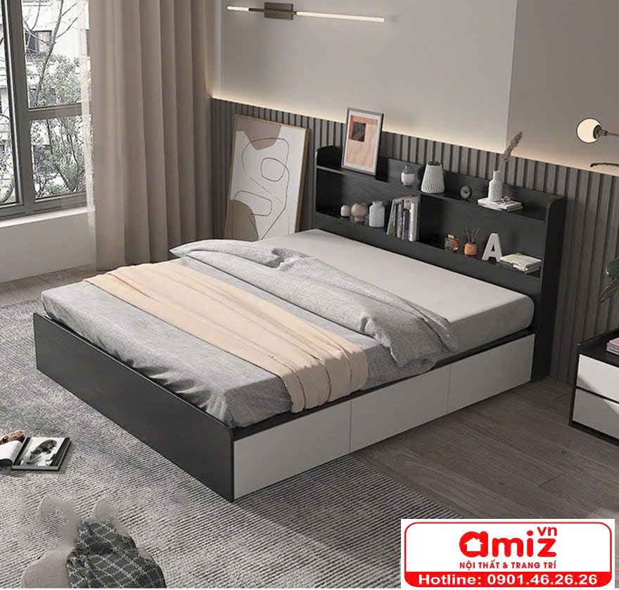 Giường ngủ gỗ MDF thiết kế kiểu dáng đơn giản AMIZ-006 đáp ứng nhu cầu của khách hàng cả về tính thẩm mỹ cũng như chất lượng vượt trội. Mẫu giường hộp MDF này hiện đang được bán với mức giá phải chăng, có tính cạnh tranh cao nên thu hút được sự quan tâm của khách hàng và vô cùng được ưa chuông.