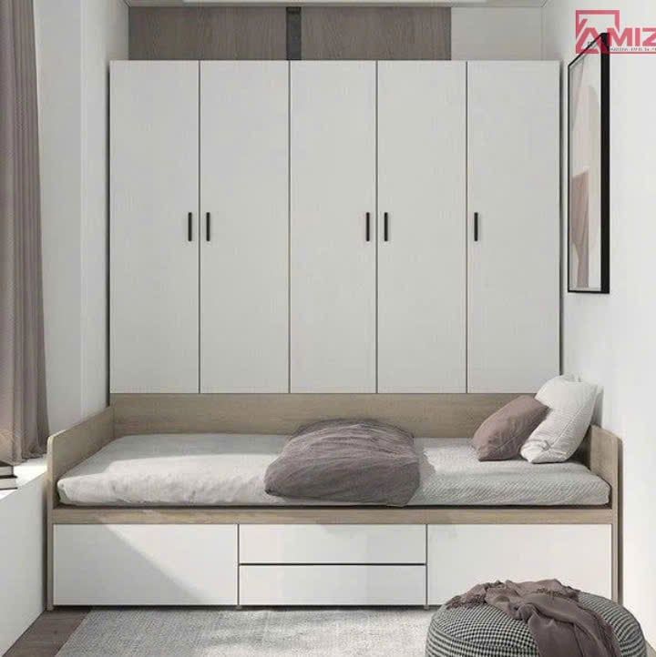 Diện tích không gian eo hẹp là vấn đề nhức nhối mỗi khi chúng ta muốn thiết kế nội thất phòng ngủ. Hai món đồ thiết yếu trong phòng ngủ là giường ngủ và tủ quần áo chiếm quá nhiều diện tích. Chúng ở 2 vị trí khác nhau. Tuy nhiên, để khai thác tối đa hiệu quả không gian và công năng thì AMIZ đã tạo ra mẫu giường liền tủ quần áo hay còn gọi là giường ngủ kết hợp tủ quần áo.