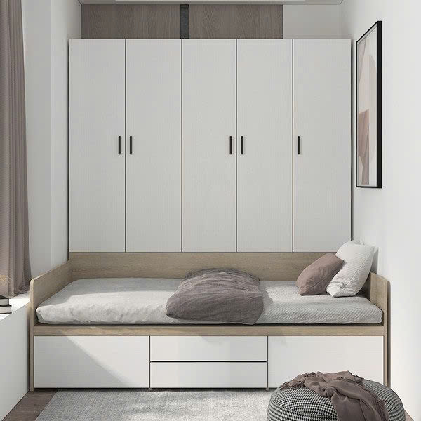 Với không gian nội thất phòng ngủ không đủ diện tích cho phép để đặt tủ quần áo và giường độc lập vì diện tích bé thì việc thiết kế mẫu tủ quần áo kết hợp giường ngủ gần như là bắt buộc. Việc kết hợp tủ áo như vậy đảm bảo mục đích sử dụng và công năng cũng như đảm bảo tính thẩm mỹ cho phòng ngủ.