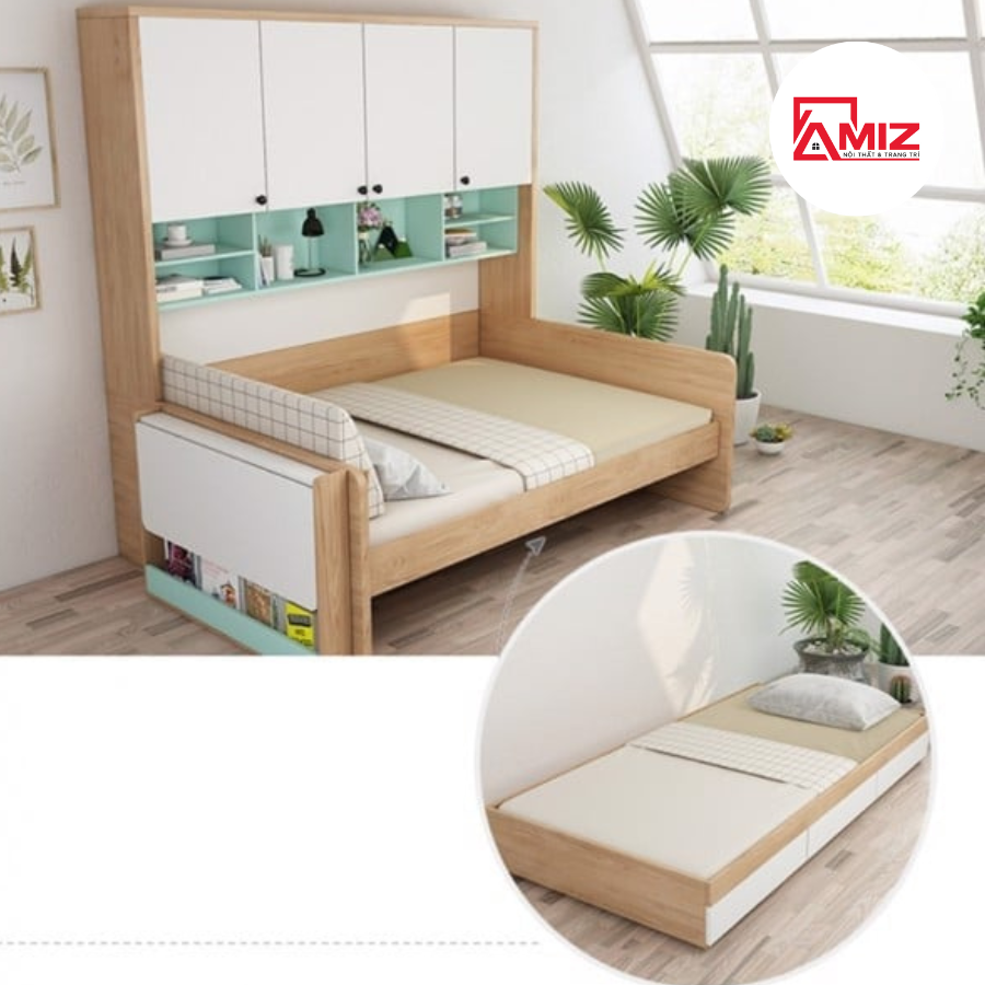 Giường đa chức năng có thêm giường kéo, tủ đồ và bàn xếp gọn