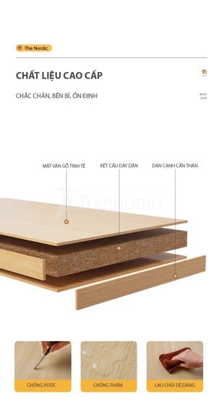 - Chất liệu gỗ MDF chống ẩm, phủ Melamine chống trầy xước, an toàn cho sức khỏe.