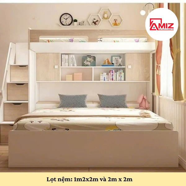 Giường trên 1m2 x 2m - Giường dưới rộng 2m x 2m
