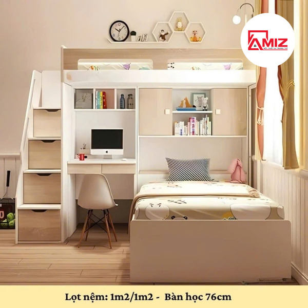 - Giường dưới 1m2 kết hợp bàn học rộng 76cm