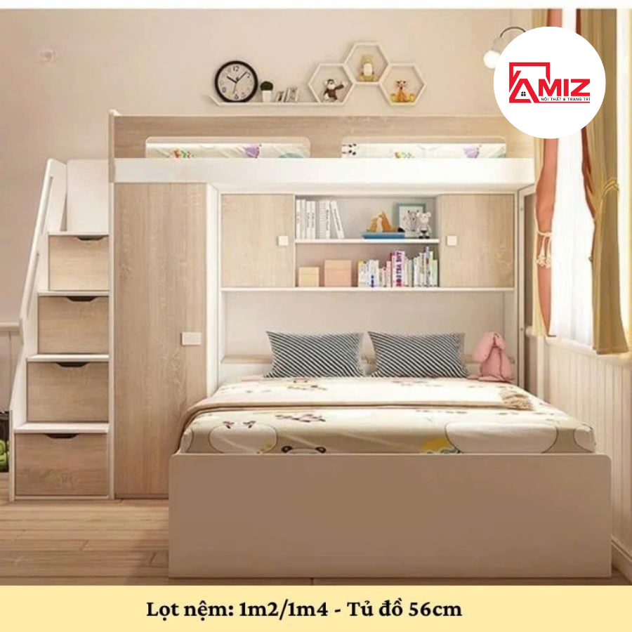 - Giường dưới rộng 1m4 kết hợp tủ rộng 56cm