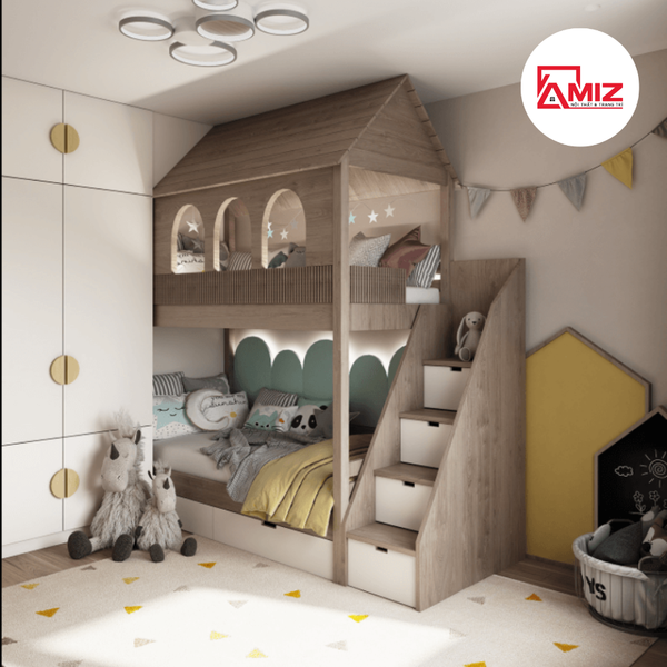 Giường tầng GTNN là thiết kế dành cho những căn phòng ngủ có diện tích khiêm tốn. Với thiết kế đẹp mắt và tính năng vượt trội sẽ khiến phòng ngủ của bé trở nên như 1 truyện cổ tích & tiện nghi.