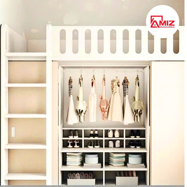 Giường tầng trẻ em thông minh kèm bàn học và tủ quần áo Amiz - GT004 là thiết kế dành cho những căn phòng ngủ có diện tích khiêm tốn. Với thiết kế đẹp mắt và tính năng vượt trội sẽ khiến bé yêu cảm thấy thích thú. Giường tầng sở hữu thiết kế tích hợp thông minh, tận dụng chiều cao để mở rộng không gian sinh hoạt. Với phong cách tối giản pha nét dễ thương, chiếc giường dễ dàng “hòa nhập” vào mọi không gian phòng ngủ hiện đại.