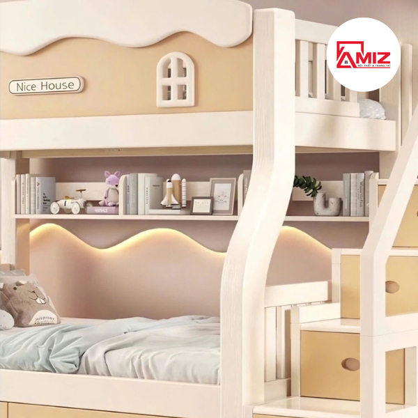 Mang đến cho bé một thế giới riêng tràn ngập yêu thương với Sweet Home Bunk – mẫu giường tầng mô phỏng hình ảnh một ngôi nhà nhỏ xinh, kết hợp hoàn hảo giữa thẩm mỹ, an toàn và tiện ích. Đây không chỉ là nơi bé nghỉ ngơi, mà còn là “tổ ấm mini” để vui chơi, đọc sách và phát triển trí tưởng tượng mỗi ngày.