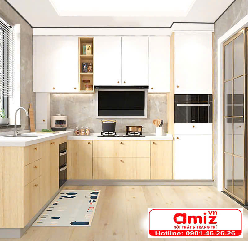 Tủ nhà bếp gỗ gia đình thiết kế sang trọng AMIZ-005 là một trong những mẫu tủ được các gia đình Việt ưa chuộng lựa chọn nhiều hiện nay. Mẫu tủ nhà bếp gỗ này có kết cấu chắc chắn, chịu lực tốt, hơn nữa còn có thiết kế hiện đại, bố trí hợp lý nên gây được ấn tượng đối với khách hàng khi đến mua sắm. Để biết thêm các chi tiết về sản phẩm này, bạn hãy cùng chúng tôi tham khảo bài viết dưới dây nha!