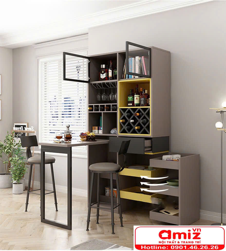 Tủ rượu đa năng liền bàn tiện dụng, thông minh