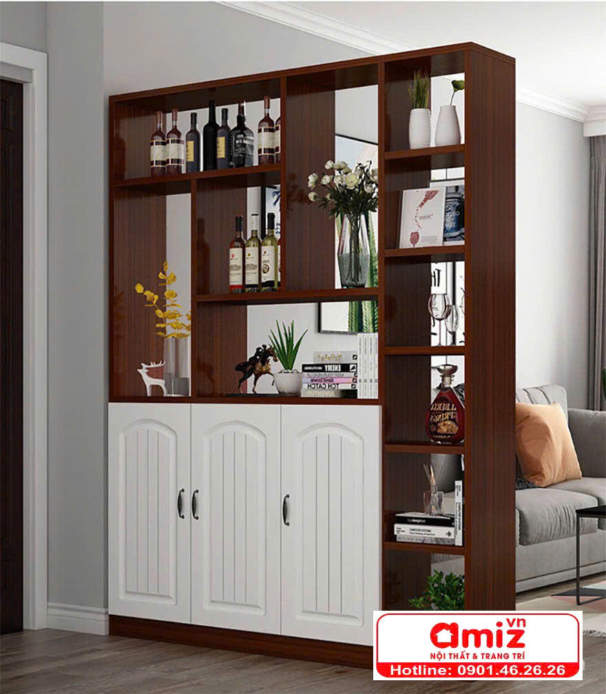 Với mẫu tủ rượu đa năng này, không gian phòng khách sẽ tiện nghi và sang trọng hơn bao giờ hết. Bạn có thể đặt tủ làm vách ngăn hoặc đặt làm tủ góc nếu không gian nhỏ hẹp. Bên cạnh đó, bạn có thể thoải mái để các món đồ cần thiết như cốc, ấm chén. Nhờ vậy mà không gian của bạn sẽ gọn gàng, thoáng mát hơn rất nhiều.