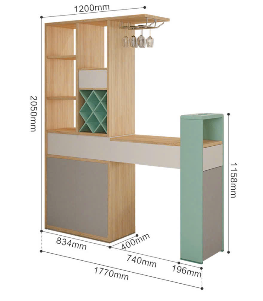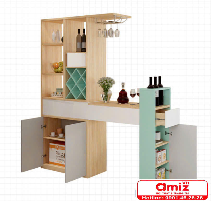 Tủ rượu gia đình này có kích thước lớn, tiện dụng có thể làm vách ngăn