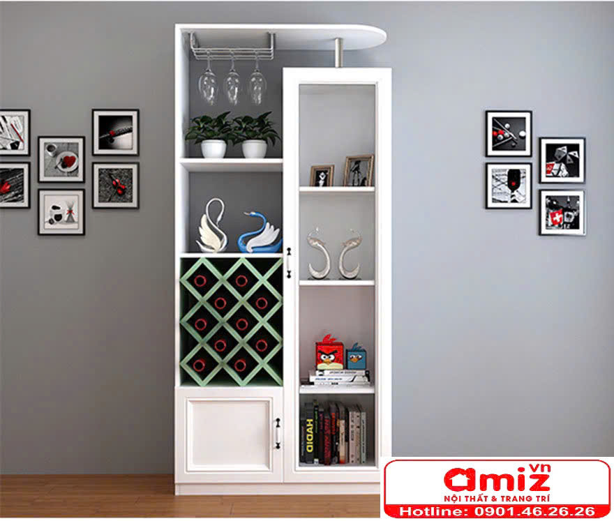 Tủ rượu gia đình tiện dụng gỗ công nghiệp AMIZ-020 là kết quả của sự kết hợp giữa một tủ rượu, tủ trưng bày, tủ sách gia đình bên trong một sản phẩm. Nhờ đó mà bạn cũng có thể thấy được tính đa dụng của mẫu tủ rượu đẹp cho gia đình này. Kiểu dáng nhỏ gọn cũng giúp sản phẩm vừa vặn với nhiều không gian sử dụng khác nhau.